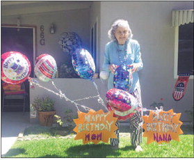 Glenna Hoff’s family surprised her with a indoor-outdoor party to celebrate her 88th birthday on Aug. 1. The family stayed on the porch while Glenna was inside. There were signs, balloons and over 30 birthday cards and gifts from relatives and neighbors. Glenna said that the “Happy Birthday” song was “special, for some reason, more this year than others.”