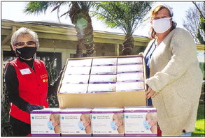 Meals On Wheels Long Beach has a total of 160 daily recipients from Leisure World. Each recieved two packets of disposable face masks with his or her recent meal deliveries.