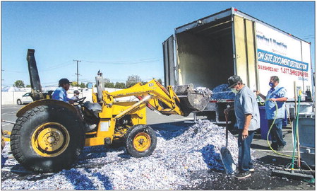 When the smoke first appeared, the truck driver dumped the shredded contents onto the ground. Once firefighters departed, volunteers shoveled the paper back into the truck, planning to resume the service until 1 p.m.