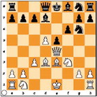 The solution to this week’s puzzle’s first move is: Qg6. The White Queen moves from e4 to g6 . Then Black to Pg6, White to Bg6 and Black to Ke7.