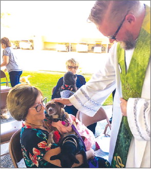 Pastor Johan Dodge (r) will give a special personalized bless ing over each pet on Oct. 4.