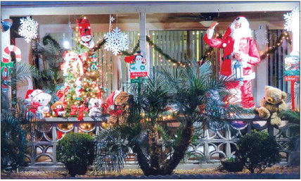 From Pam and Bill Turner’s front windows at 13201 El Dorado Drive, 207-L, neighbors can see their Department 56 collection, which began with the Dicken’s railroad station and grew to include the North Pole Series. “We have over 30 houses and numerous accessories,” they said. “People often comment about the work it takes to create it, but it is pure joy putting on each piece.”