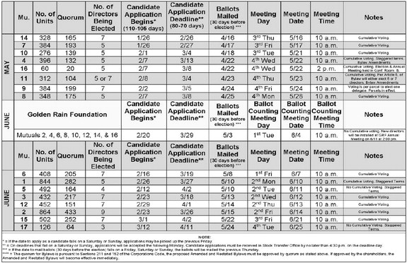 The 2024 GRF and Mutual Election and Annual Meeting Shedule