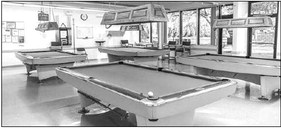 The pool room is open from 7 a.m.-10 p.m. daily. Members are encouraged to practice at their leisure. Beginners are encouraged and welcome. Members are happy to teach beginners how to play. Yearly dues are $5.