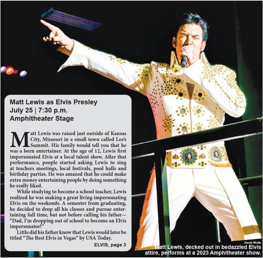 Matt Lewis as Elvis Presley July 25 | 7:30 p.m. Amphitheater Stage