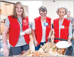The Hospitality Center will serve Domino's Pizza, along with coffee and tea on Wednesday, Sept. 11, from 9-11 a.m. in Clubhouse 6. Volunteers Beth Greeley (l-r), Shelly Solis and Pat Whisnant served pizza at the last event.