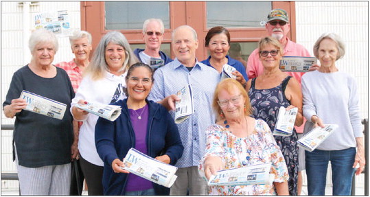 Eagle Rock Express owner Dan Pomeroy (center, in blue) poses with carriers who confront wind, rain and scorching heat to deliver the LW Weekly to every household in LW. Leisure World. As soon as the News Office opens, the phone starts to ring.