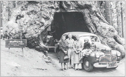 I am thankful for my family and thankful for my God who created the beautiful Yosemite Valley where my family vacationed for many a summer. In the photo, circa July 1941, members of my family are posing in front of Yosemite’s famous drive-through tree in the Wawona Grove.