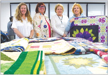 LW Library Operations Supervisor Vanessa Morris (l-r), GRF Recreation Committee Chairwoman Leah Perotti, Quilting Club Vice President Marcella Campbell and President Susan Rose check out the new facility on opening day Feb. 2. The Quilting Bees Club made the quilts that are on display. The club uses Clubhouse 3 for its meetings and crafting quilts. For more on the club and how to participate, see page 13. (Masks are currently required inside all GRF facilities; masks were briefly removed to take the photo.)Ruth Osborn