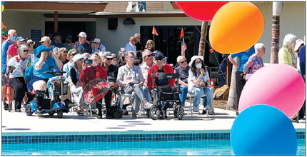Leisure World residents lined up in droves to attend the long-awaited unveiling of the GRF Aquatic Center, which was open for tours May 5. Colorful balloons strung across the pool blew in the breeze as scores of people filed in for a ribboncutting ceremony and surf band concert.
