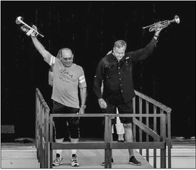 A trumpet fanfare preceded the introduction of new GRF Executive Director Jessica Sedgwick, who was accompa - nied on stage by GRF president Marsha Gerber at the June 30 Amphitheater concert. Trumpet players were Richard Freedman and Bruce Vircks.