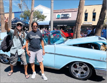 Silver Fox Classic Car Club President Ted Green (l) and Club Member Ron Lee (r), enjoying the day at the Belmont Shore Car Show, in front of a 1957 baby blue beach bound Bel Air. The car club meets on the second Tuesday of each the month in Clubhouse 3, Room 5, at 6 p.m. Members don’t have to own a vintage, classic or collectible vehicle to join the club, just a passion for cars.