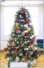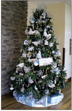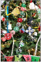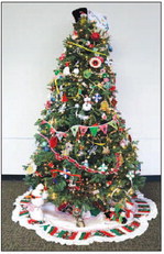 The Leisure World Art League’s elegant tree in the Clubhouse 4 foyer shows off the members’ skills with exquisite hand-painted ornaments, including “The Twelve Days of Christmas” scenes on artists’ palettes. Last, but certainly not least, the Quilting Bees’ joyful tree in Clubhouse 1 features a myriad of original, delicately quilted and sewn ornaments as well as carefully placed thread spools, bobbins, yarn balls and Christmas ribbons.