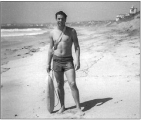 Bruce Smith lifeguarding at Hermosa Beach, 1952.