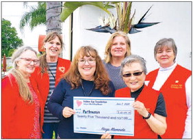 Beth Greeley (center) from Pathways receives the GAF donation from GAF board member Fara Mccartney (l-r), Tammie Ottenad, Vicki Kaefer, GAF President Anna Derby and Diana Lambert.