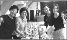 Gina Baik (l-r), Sophia Kim, Sunny Kim and Michelle Lee served Korean dosirak lunches at the club's last party.