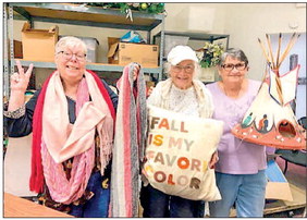 Taylor White (l-r), Patty Jo Schmitz and Carol Burge are some of the people who will bring the Fall Bazaar to the Leisure World Community Church on Oct. 5 from 9 a.m.-1 p.m. They have been working hard to create many different attractions to suit everyone, including a bake sale, crafts, Granny's Attic and Sandy's Café. All these booths will be filled with many different items to create a fun stimulating atmosphere for the shoppers. White, Schmitz and Burge hold some of the variety of items from Granny's Attic, an always popular booth at the Bazaar. Shop in the morning and then stay for a delicious lunch.