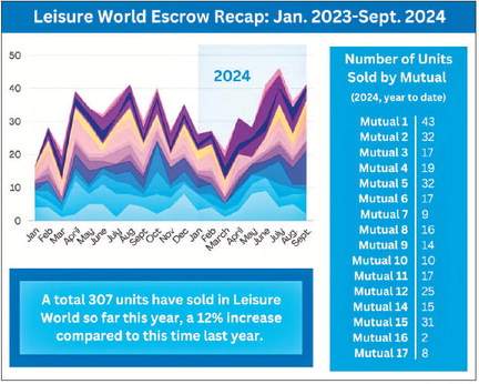 The GRF Stock Transfer office tracks escrow sales each month to monitor sales of units in Leisure World. Home sales provide an important component to GRF revenue streams. With the sale of every unit, there is a one-time Trust Property Use Fee that is directly channeled into the GRF capital and reserve funds.