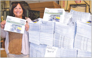 Estella Martinez, service representative for Reed Printing, holds a freshlyprinted LW Weekly.