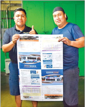 Alfredo Xolalpa and Agustin Dorantes hold Minibus Guide pages, hot off the press March 16.