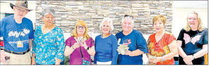 May 24 winners: Clarence Hoffman (l-r), Dolores Ruiz and Heather Moore, most buncos; Gerri Wright, most wins; Joy Nasser, most babies; Chung He Scharschmidt, most losses; Stella Kaiser, door prize.